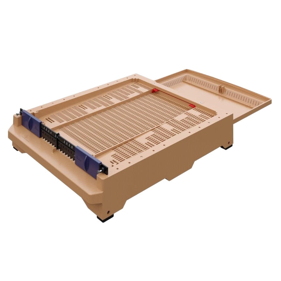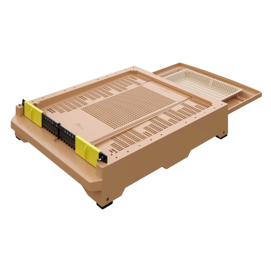 Biyolojik Varroa Kontrolü: Tabanın sahip olduğu Anti-Varroa ızgarası, işçi arıların üzerinden düşen parazitlerin çekmeceye hapsolmasını sağlar. Bu sayede parazit döngüsü doğal bir şekilde kırılarak, kimyasal kullanım ihtiyacı azalır.
