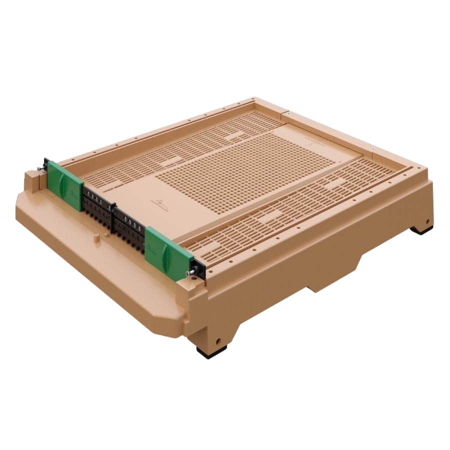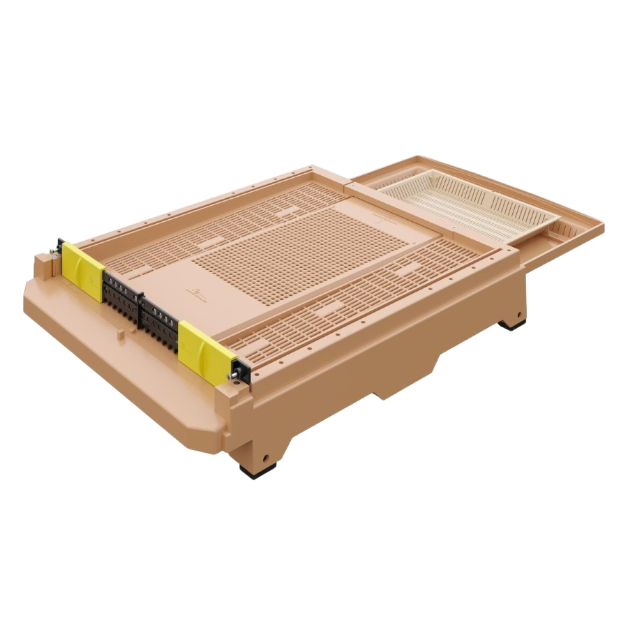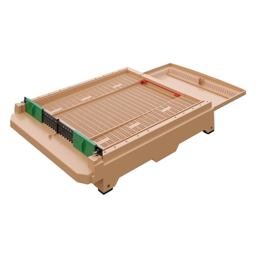 Anti-Varroa Izgarası: Tabanın tamamını kapsayan ızgaralı yapı, varroa parazitlerinin kovan dışına düşmesini sağlayarak koloninizi doğal yollarla korur.