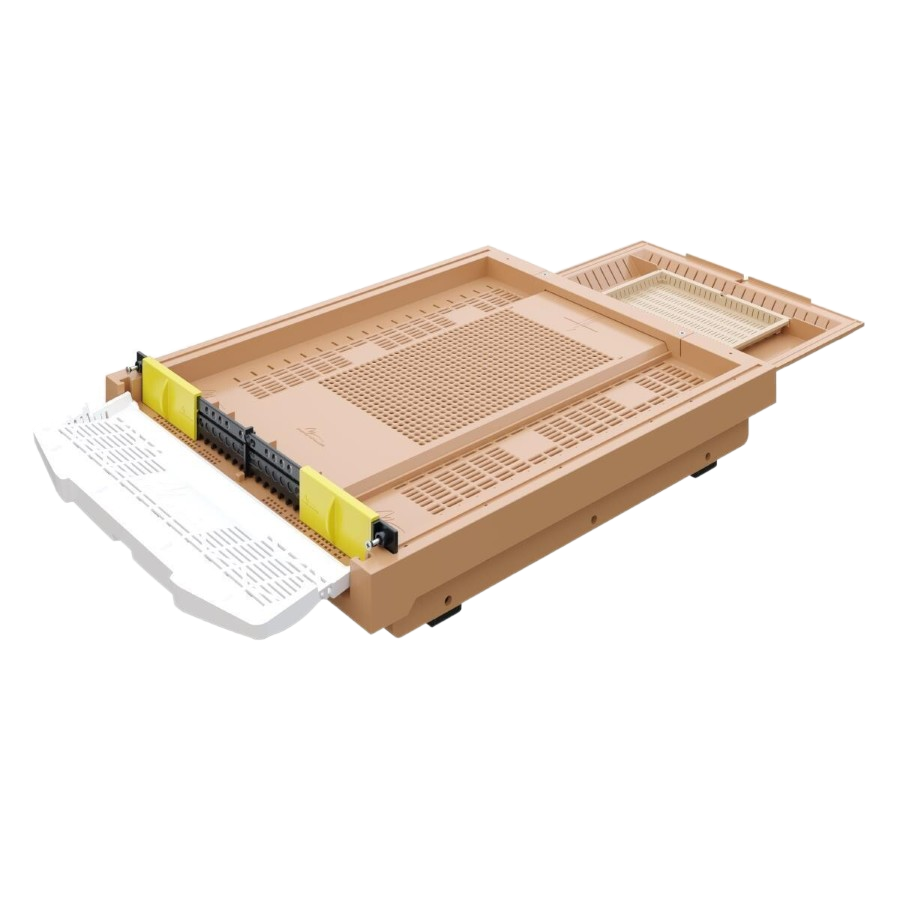 Entegre Anti-Varroa Sistemi: Taban ızgarası, arıların üzerindeki parazitlerin doğrudan alt tepsiye düşmesini sağlar. Kimyasal kullanmadan varroa popülasyonunu kontrol altında tutmanıza yardımcı olur.
