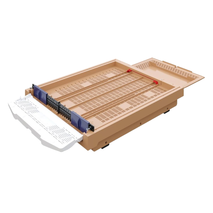 Apimaye’nin yüksek teknolojiyle ürettiği E-Tipi Kovan Tabanı, arı kolonilerinizin sağlığını ve verimliliğini korumak için tasarlanmış profesyonel bir çözümdür. Arkadan çekmeceli ergonomik yapısı, arıların uçuş trafiğini bozmadan polen hasadı ve varroa kontrolü yapmanıza olanak tanır.